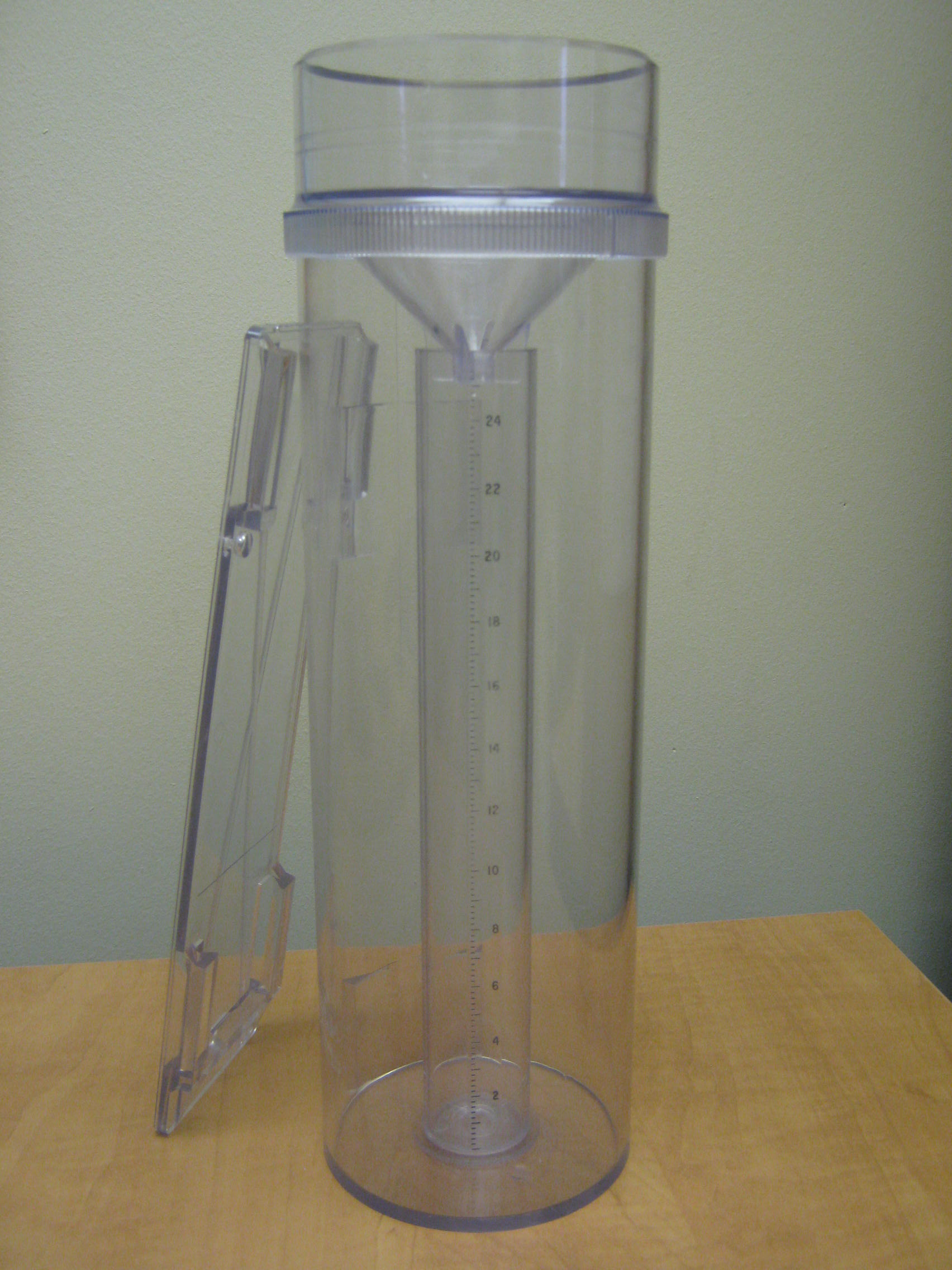 Also, the second outer cylinder can be used to take snow core measurements on your snow board next to the gauge.